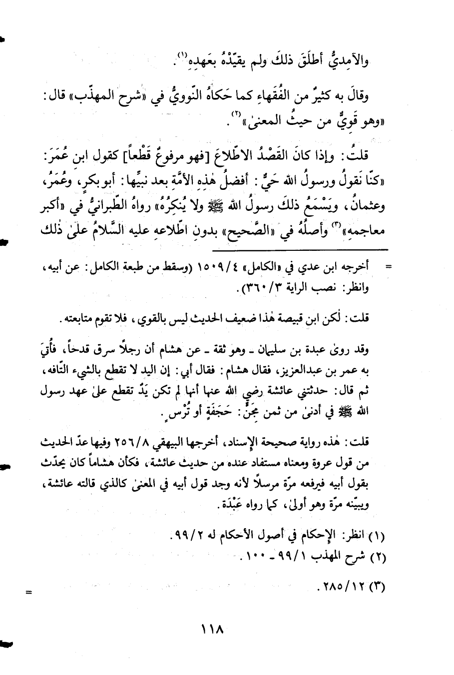 قلت وَإِذا كَانَ الْقَصْد الإطلاع فَهُوَ مَرْفُوع 3 قطعا كَقَوْل ابْن عمر كُنَّا نقُول وَرَسُول الله حَيّ أفضل هَذِه الْأمة بعد نبيها أَبُو بكر وَعمر 4 وَعُثْمَان وَيسمع ذَلِك رَسُول الله صلى الله عَلَيْهِ وَسلم وَلَا يُنكره رَوَاهُ الطَّبَرَانِيّ فِي أكبر 5 معاجمه وَأَصله فِي لصحيح بِدُونِ إطلاعه عَلَيْهِ السَّلَام على ذَلِك