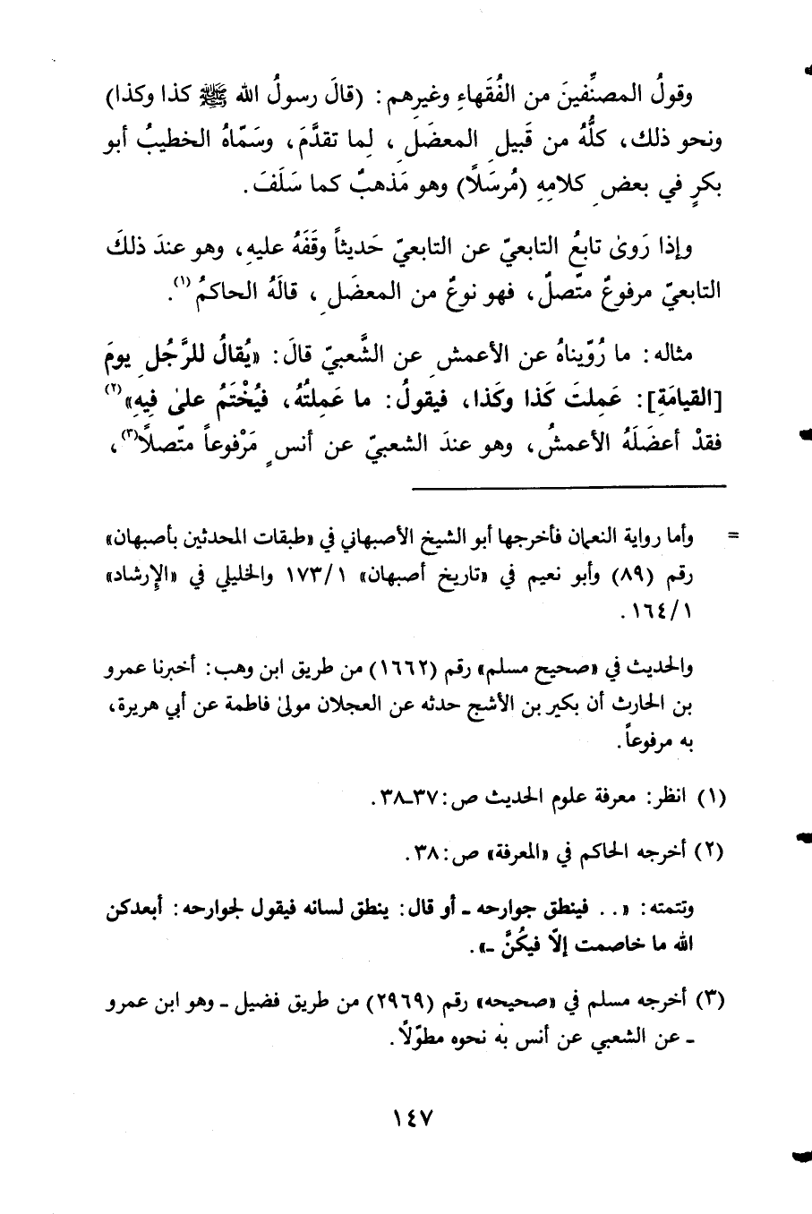 1 - وَقَول المصنفين من الْفُقَهَاء وَغَيرهم قَالَ رَسُول الله صلى الله عَلَيْهِ وَسلم كَذَا وَكَذَا 2 وَنَحْو ذَلِك كُله من قبيل المعضل لما تقدم وَسَماهُ الْخَطِيب أَبُو بكر فِي بعض كَلَامه مُرْسلا 3 وَهُوَ مَذْهَب كَمَا سلف