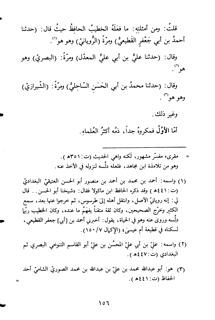 1 - قلت وَمن أمثلته مَا فعله الْخَطِيب الْحَافِظ حَيْثُ قَالَ حَدثنَا أَحْمد بن أبي جَعْفَر الْقطيعِي 2 وَمرَّة الرَّوْيَانِيّ وَهُوَ هُوَ
