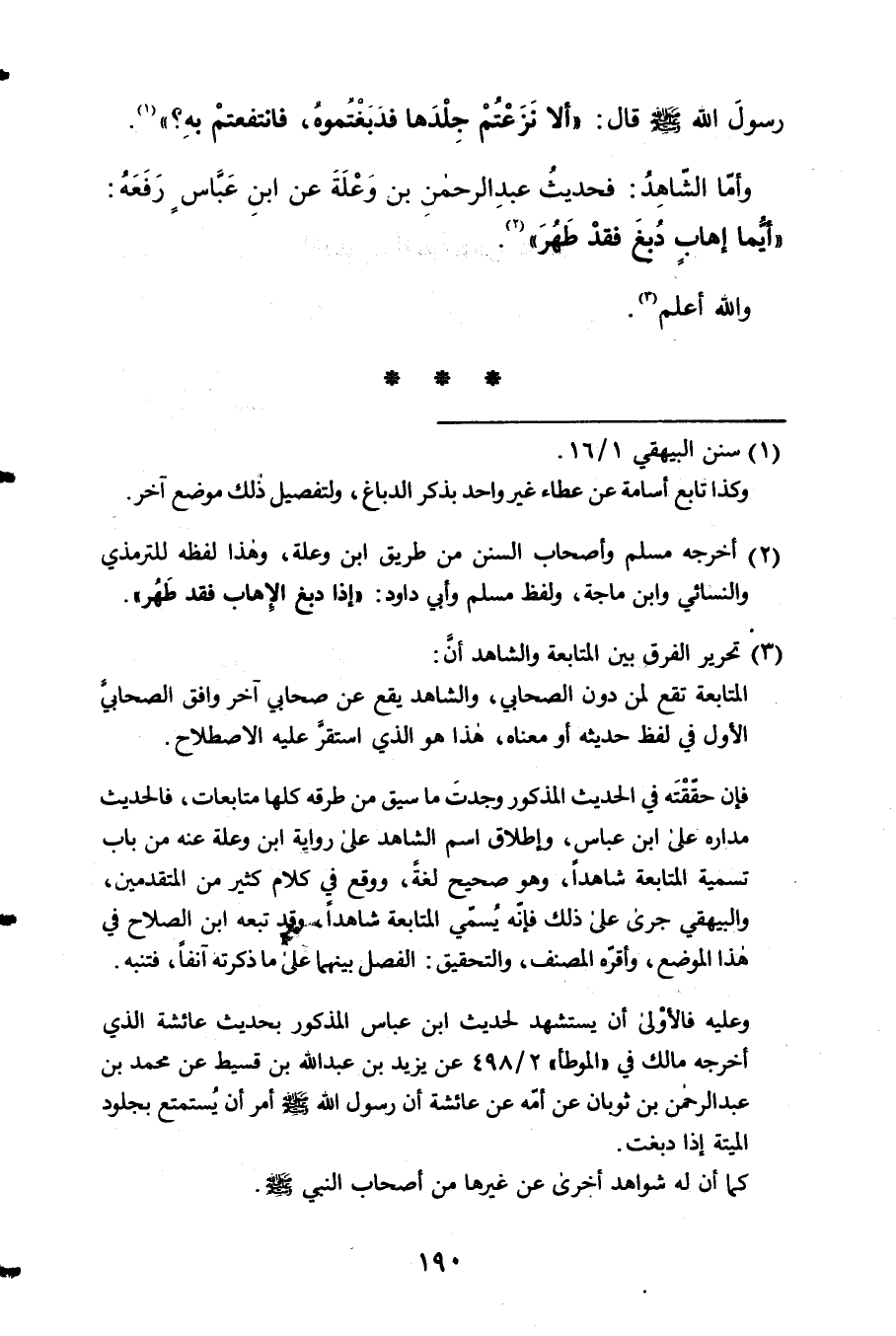وَأما 2 الشَّاهِد فَحَدِيث عبد الرَّحْمَن بن وَعلة عَن ابْن عَبَّاس رَفعه أَيّمَا إهَاب دبغ فقد طهر