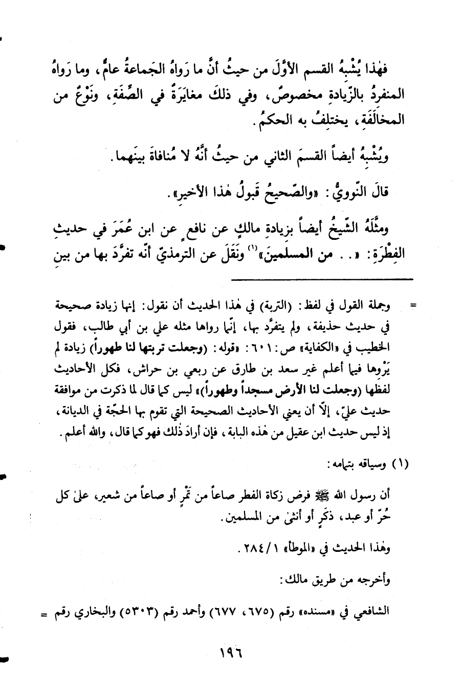 وَمثله 4 الشَّيْخ أَيْضا بِزِيَادَة مَالك عَن نَافِع عَن عمر فِي حَدِيث الْفطْرَة من الْمُسلمين وَنقل عَن التِّرْمِذِيّ 5 أَنه تفرد بهَا من بَين