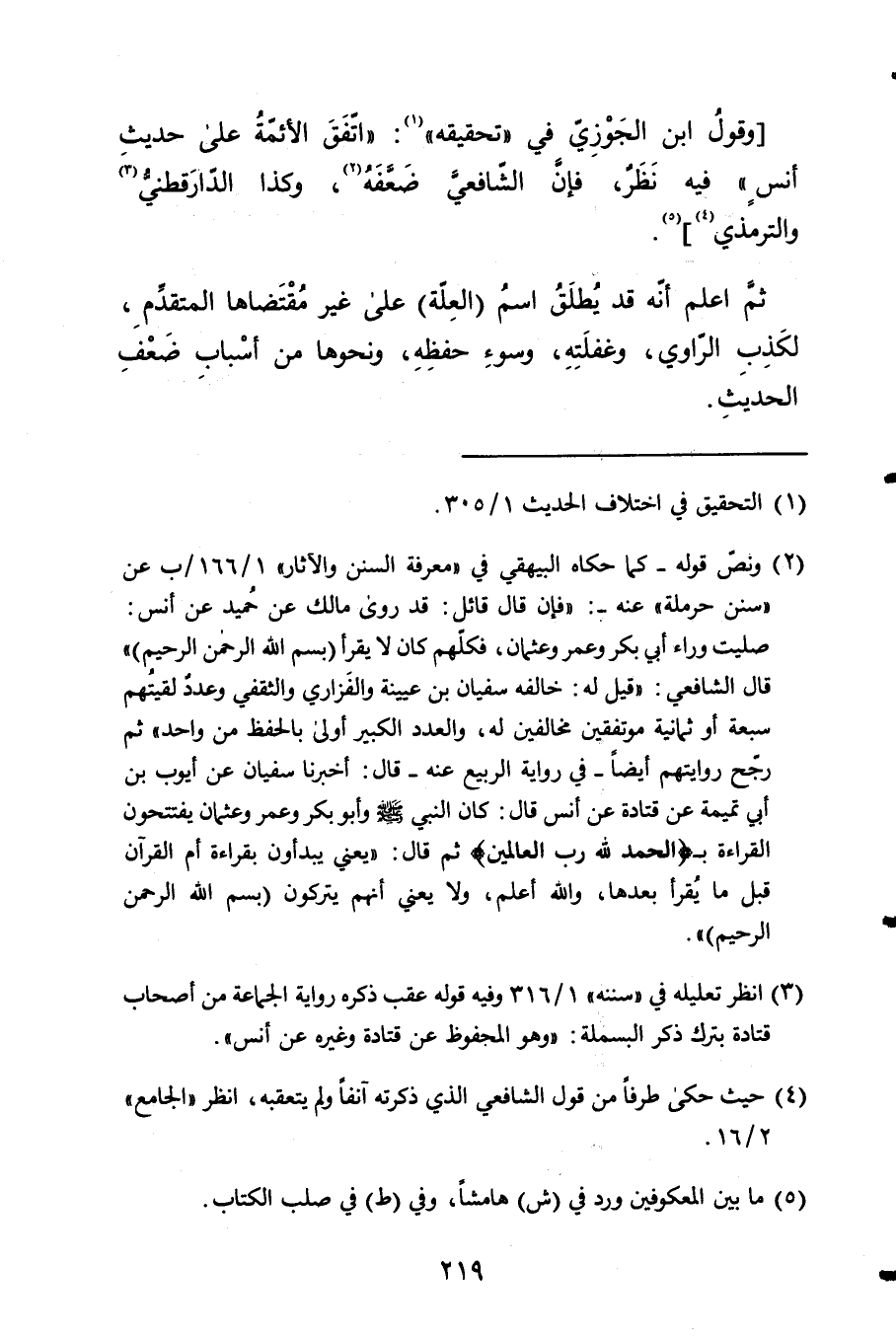 1 - وَقَول ابْن الْجَوْزِيّ فِي تَحْقِيقه اتّفق الْأَئِمَّة على حَدِيث أنس فِيهِ نظر فَإِن الشَّافِعِي ضعفه 2 وَكَذَا الدَّارَقُطْنِيّ وَالتِّرْمِذِيّ