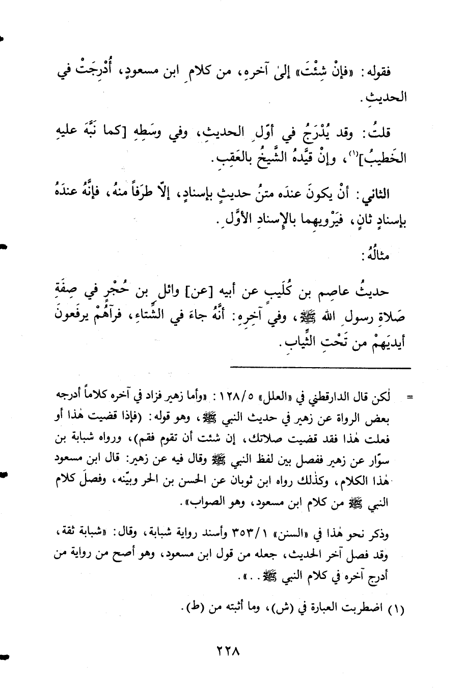 الثَّانِي أَن يكون 3 عِنْده متن حَدِيث بِإِسْنَاد إِلَّا طرفا مِنْهُ فَإِنَّهُ عِنْده بِإِسْنَاد ثَان فيرويهما بِالْإِسْنَادِ الأول 4