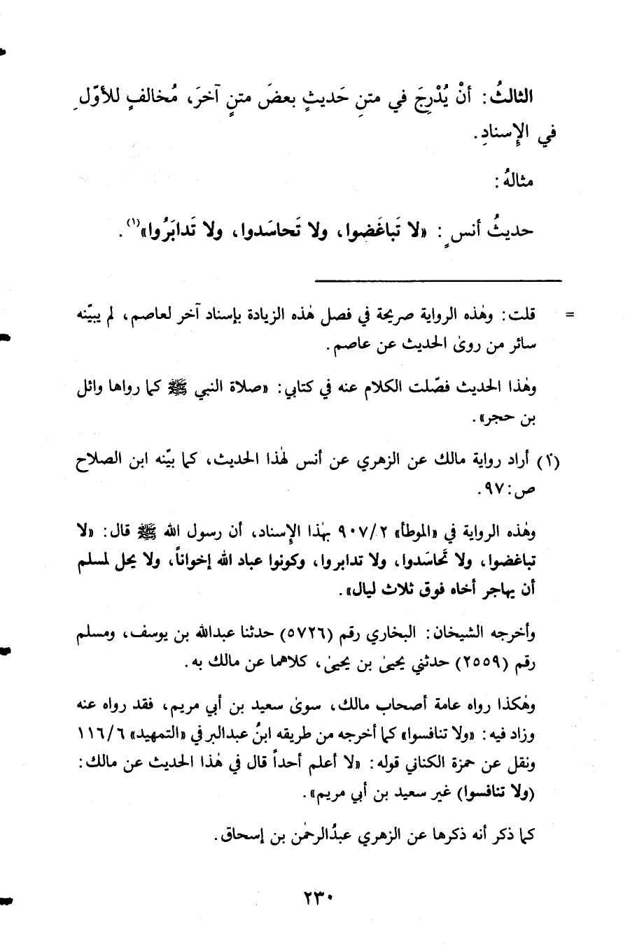 1 - الثَّالِث أَن يدرج فِي متن حَدِيث بعض متن آخر مُخَالف للْأولِ فِي الْإِسْنَاد