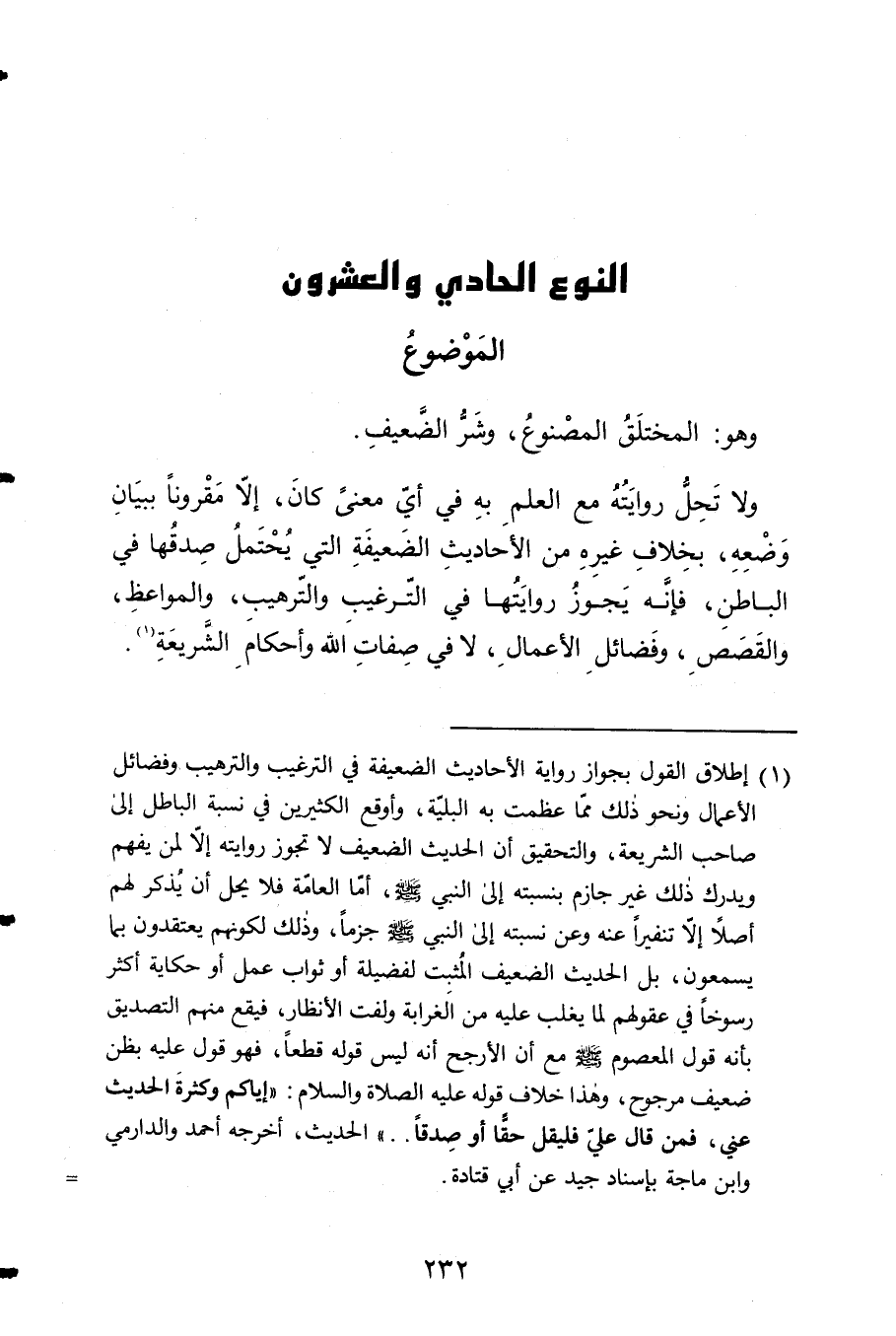 وَلَا تحل 2 رِوَايَته مَعَ الْعلم بِهِ فِي أَي معنى كَانَ إِلَّا مَقْرُونا بِبَيَان وَضعه بِخِلَاف غَيره من الْأَحَادِيث 3 الضعيفة الَّتِي يحْتَمل صدقهَا فِي الْبَاطِن فَإِنَّهُ يجوز رِوَايَتهَا فِي التَّرْغِيب والترهيب والمواعظ 4 والقصص وفضائل الْأَعْمَال لَا فِي صِفَات الله وَأَحْكَام الشَّرِيعَة