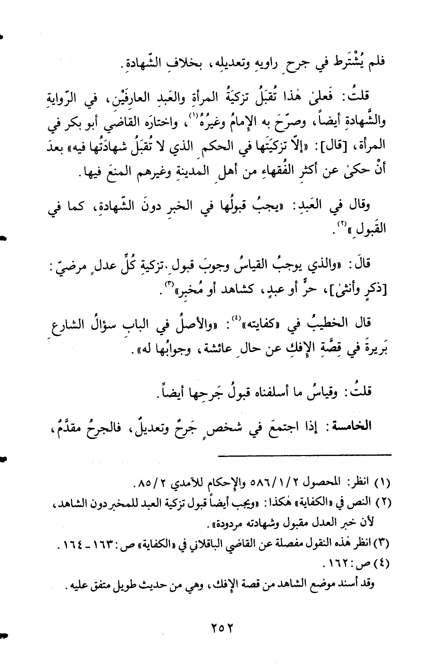 قَالَ الْخَطِيب فِي كِفَايَته وَالْأَصْل فِي الْبَاب 7 سُؤال الشَّارِع بَرِيرَة فِي قصَّة الْإِفْك عَن حَال عَائِشَة وجوابها لَهُ