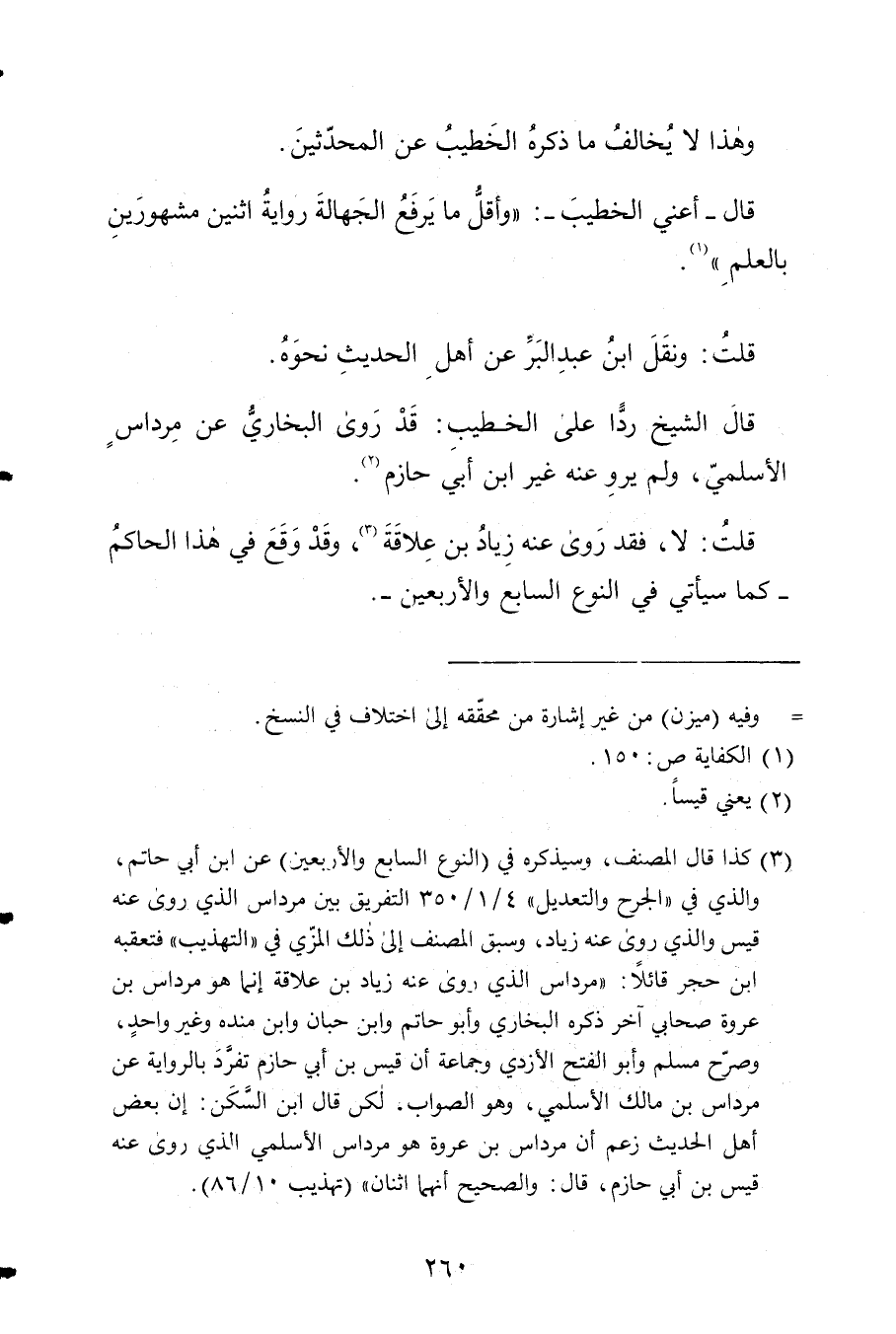 قَالَ أَعنِي الْخَطِيب وَأَقل مَا يرفع الْجَهَالَة 2 رِوَايَة اثْنَيْنِ مشهورين بِالْعلمِ