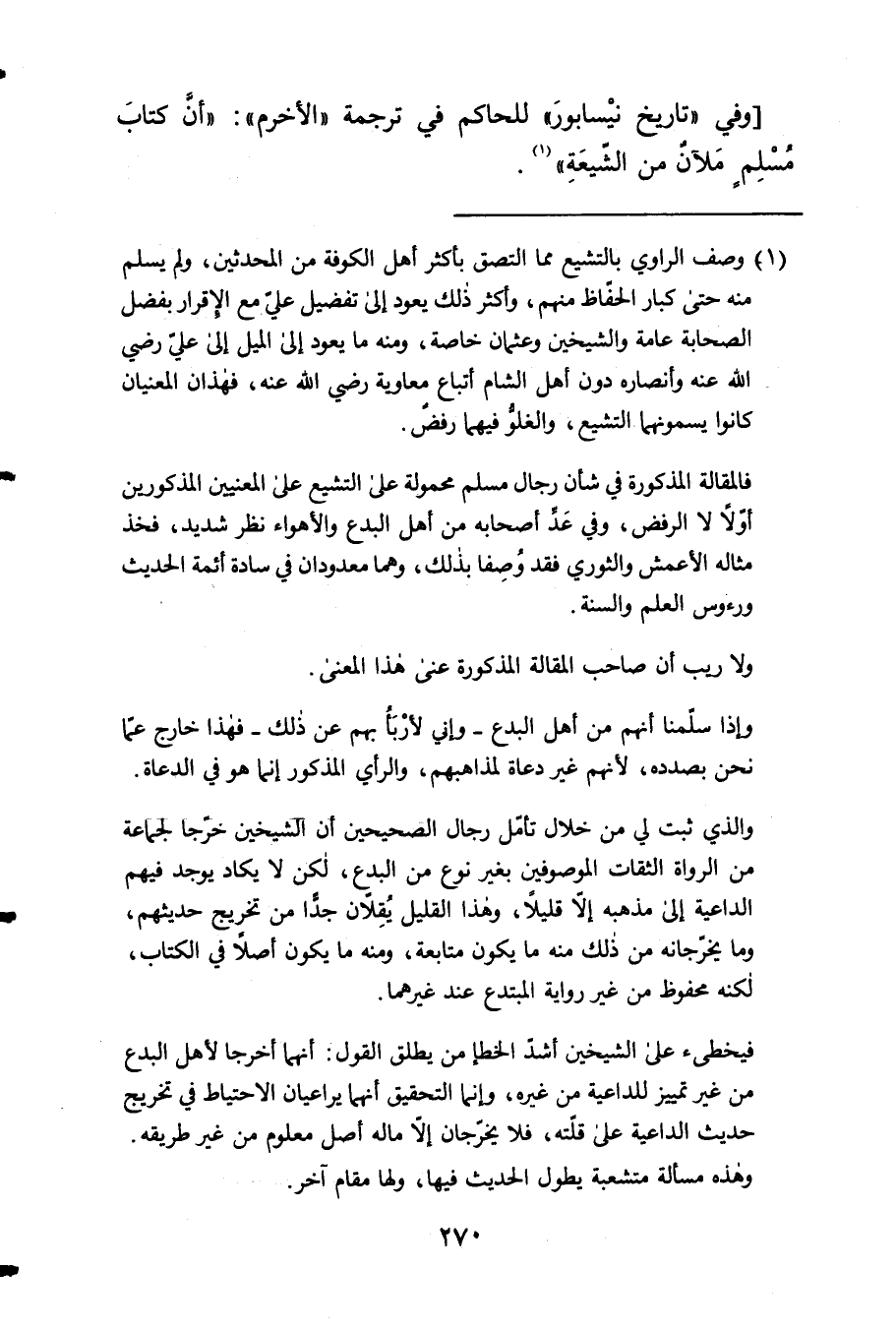 1 - وَفِي تَارِيخ نيسابور للْحَاكِم فِي تَرْجَمَة الأخرم أَن كتاب مُسلم ملآن من الشِّيعَة