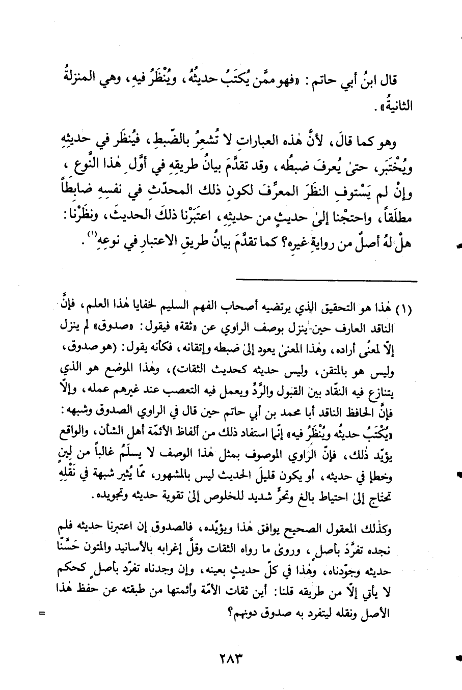 1 - قَالَ ابْن أبي حَاتِم فَهُوَ مِمَّن يكْتب حَدِيثه وَينظر فِيهِ وَهِي الْمنزلَة الثَّانِيَة