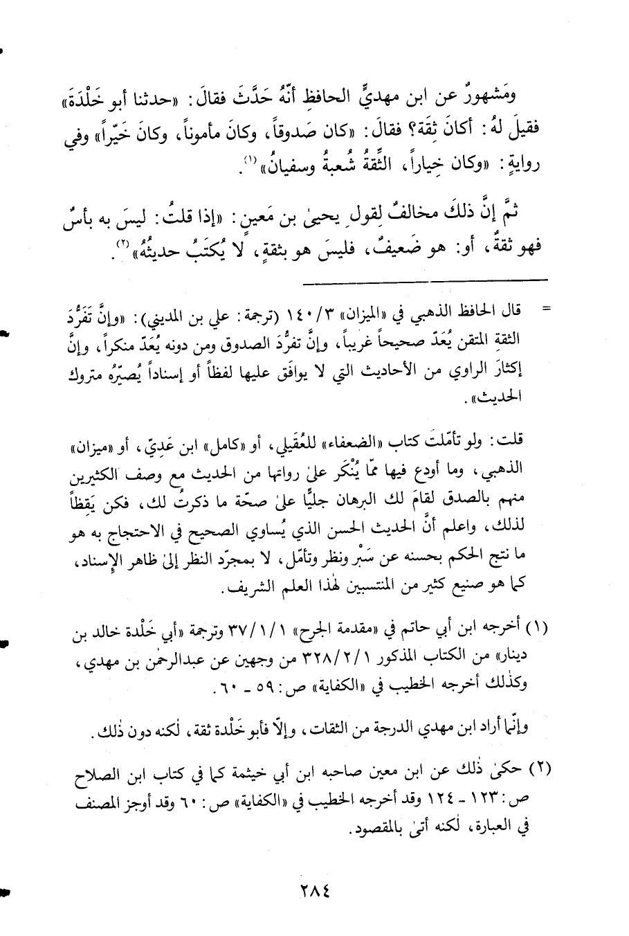 ثمَّ إِن 3 ذَلِك مُخَالف لقَوْل يحيى بن معِين إِذا قلت لَيْسَ بِهِ بَأْس فَهُوَ ثِقَة أَو هُوَ ضَعِيف فَلَيْسَ هُوَ بِثِقَة 4 لَا يكْتب حَدِيثه