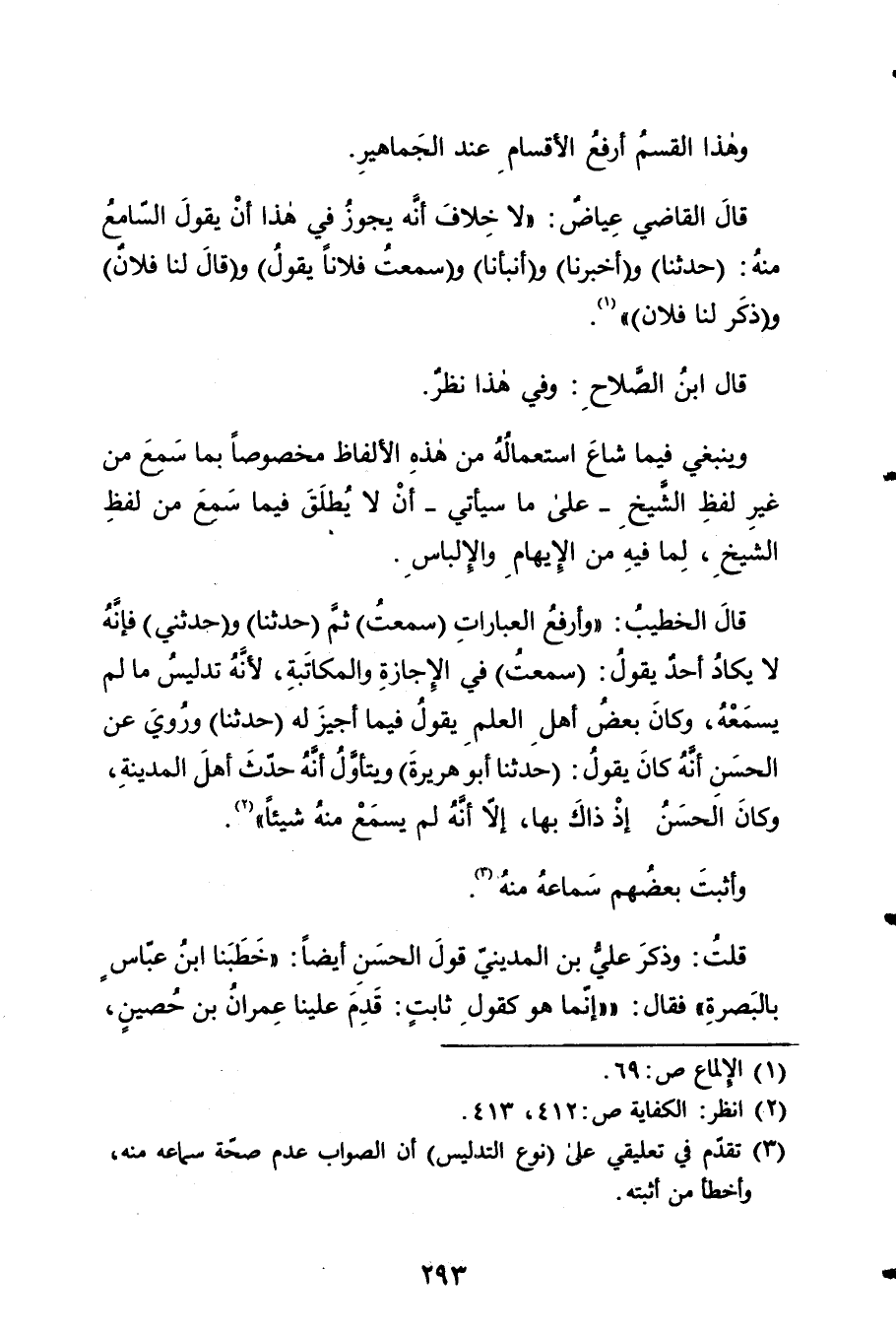 قَالَ الْخَطِيب وَأَرْفَع الْعبارَات سَمِعت ثمَّ حَدثنَا وحَدثني 6 فَإِنَّهُ لَا يكَاد أحد يَقُول سَمِعت فِي الْإِجَازَة وَالْمُكَاتبَة لِأَنَّهُ تَدْلِيس مَا لم يسمعهُ وَكَانَ بعض 7 أهل الْعلم يَقُول فِيمَا أُجِيز لَهُ حَدثنَا وَرُوِيَ عَن الْحسن إِذْ ذَاك بهَا إِلَّا أَنه لم يسمع مِنْهُ 8 شَيْئا