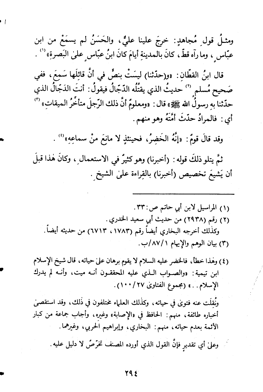 قَالَ ابْن الْقطَّان وَحدثنَا لَيست بِنَصّ فِي أَن قَائِلهَا سمع 3 فَفِي صَحِيح مُسلم حَدِيث الَّذِي يقْتله الدَّجَّال فَيَقُول أَنْت الدَّجَّال الَّذِي حَدثنَا بِهِ رَسُول الله 4 صلى الله عَلَيْهِ وَسلم قَالَ وَمَعْلُوم أَن ذَلِك الرجل متأجر الْمِيقَات أَي فَالْمُرَاد حدث أمته وَهُوَ مِنْهُم