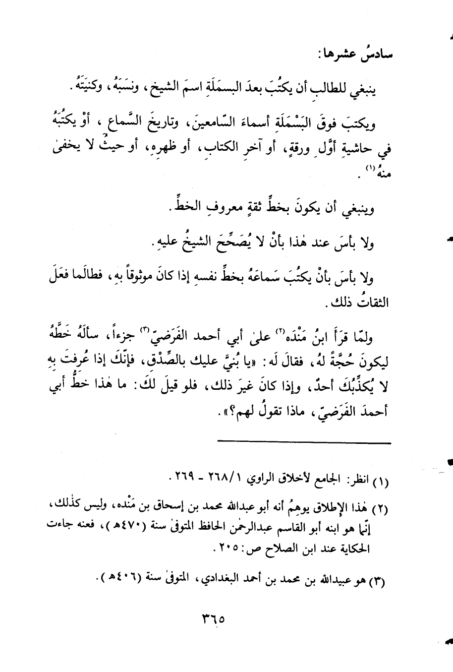 يَنْبَغِي للطَّالِب أَن يكْتب بعد الْبَسْمَلَة اسْم الشَّيْخ، وَنسبه، وكنيته. 2