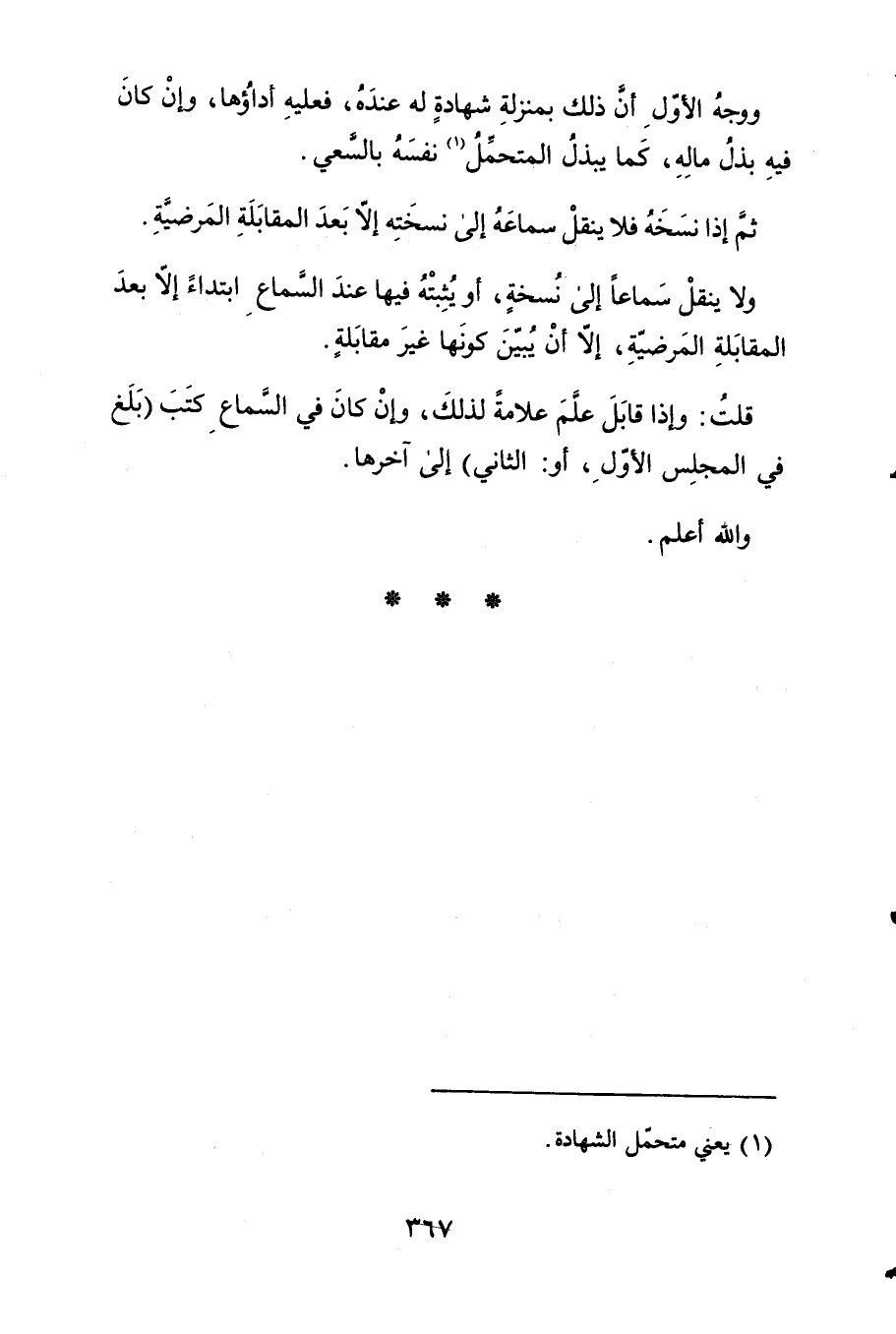 ثمَّ إِذا نسخه فَلَا ينْقل سَمَاعه إِلَى نسخته إِلَّا بعد 3 الْمُقَابلَة المرضية.