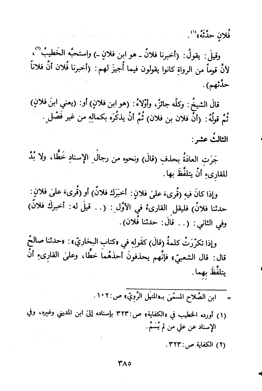 جرت الْعَادة بِحَذْف قَالَ وَنَحْوه من رجال الْإِسْنَاد خطا وَلَا بُد 5 للقارئ أَن يتَلَفَّظ بهَا