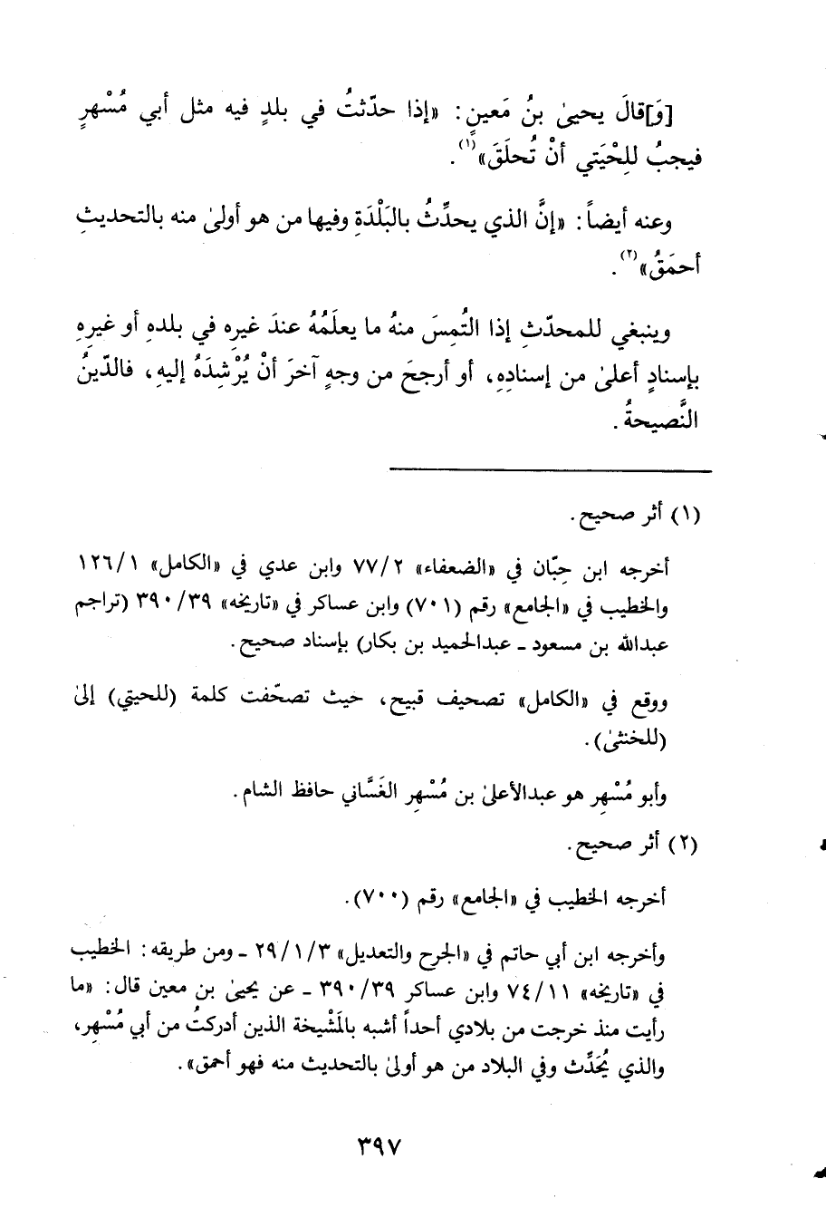 1 - وَقَالَ يحيى بن معِين إِذا حدثت فِي بلد فِيهِ مثل أبي مسْهر فَيجب للحيتي أَن تحلق