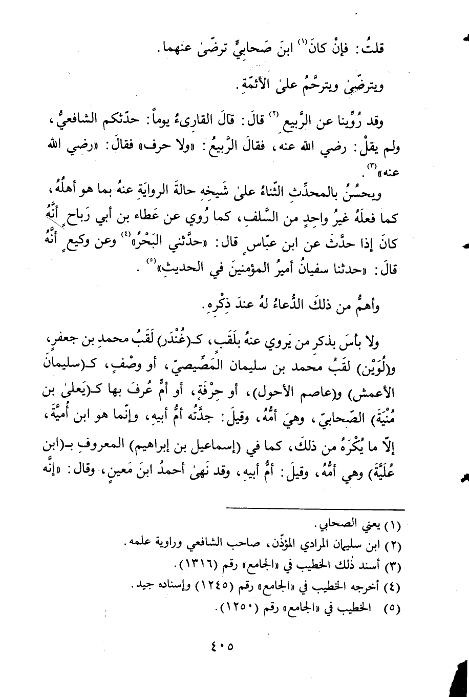 وَقد روينَا عَن 2 الرّبيع قَالَ قَالَ الْقَارئ يَوْمًا حَدثكُمْ الشَّافِعِي وَلم يقل رَضِي الله تَعَالَى عَنهُ فَقَالَ الرّبيع 3 وَلَا حرف فَقَالَ رَضِي الله تَعَالَى عَنهُ