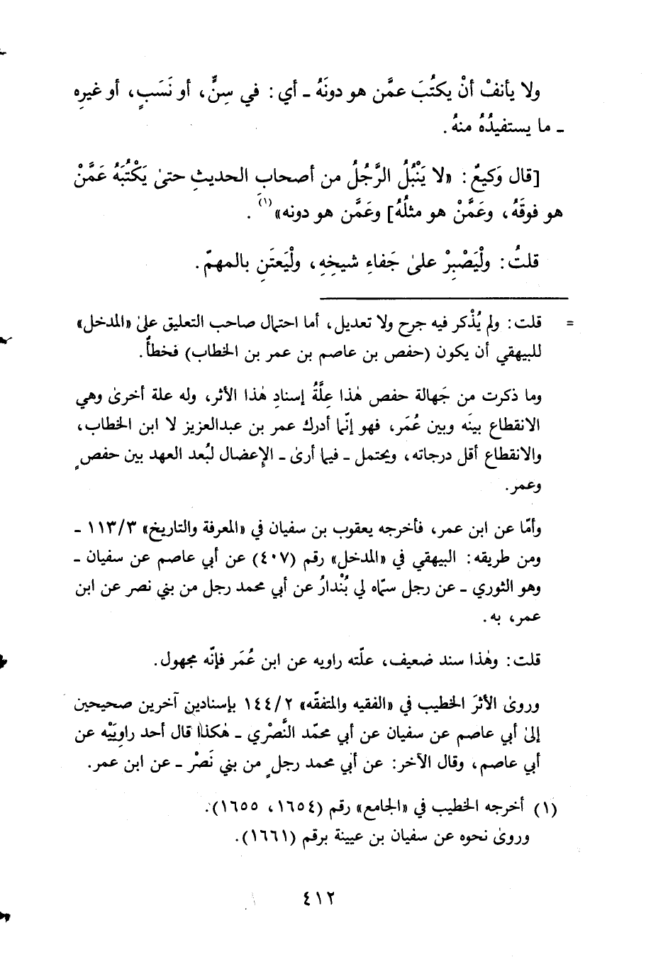 1 - وَلَا يأنف أَن يكْتب عَمَّن هُوَ دونه أَي فِي سنّ أَو نسب أَو غَيره مَا يستفيده مِنْهُ