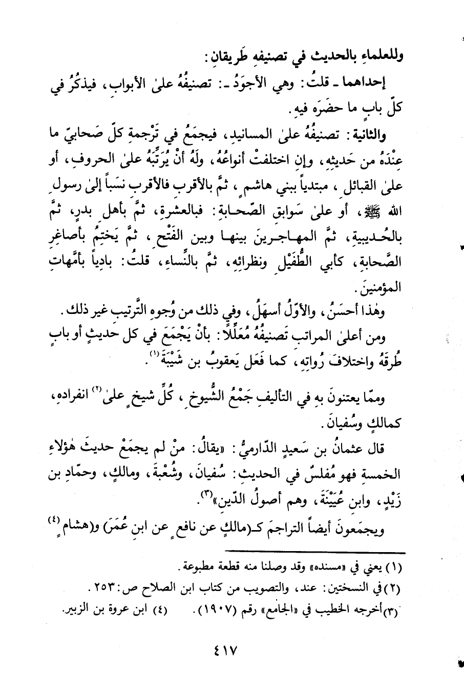 1 - 417 وللعلماء بِالْحَدِيثِ فِي تصنيفه طَرِيقَانِ