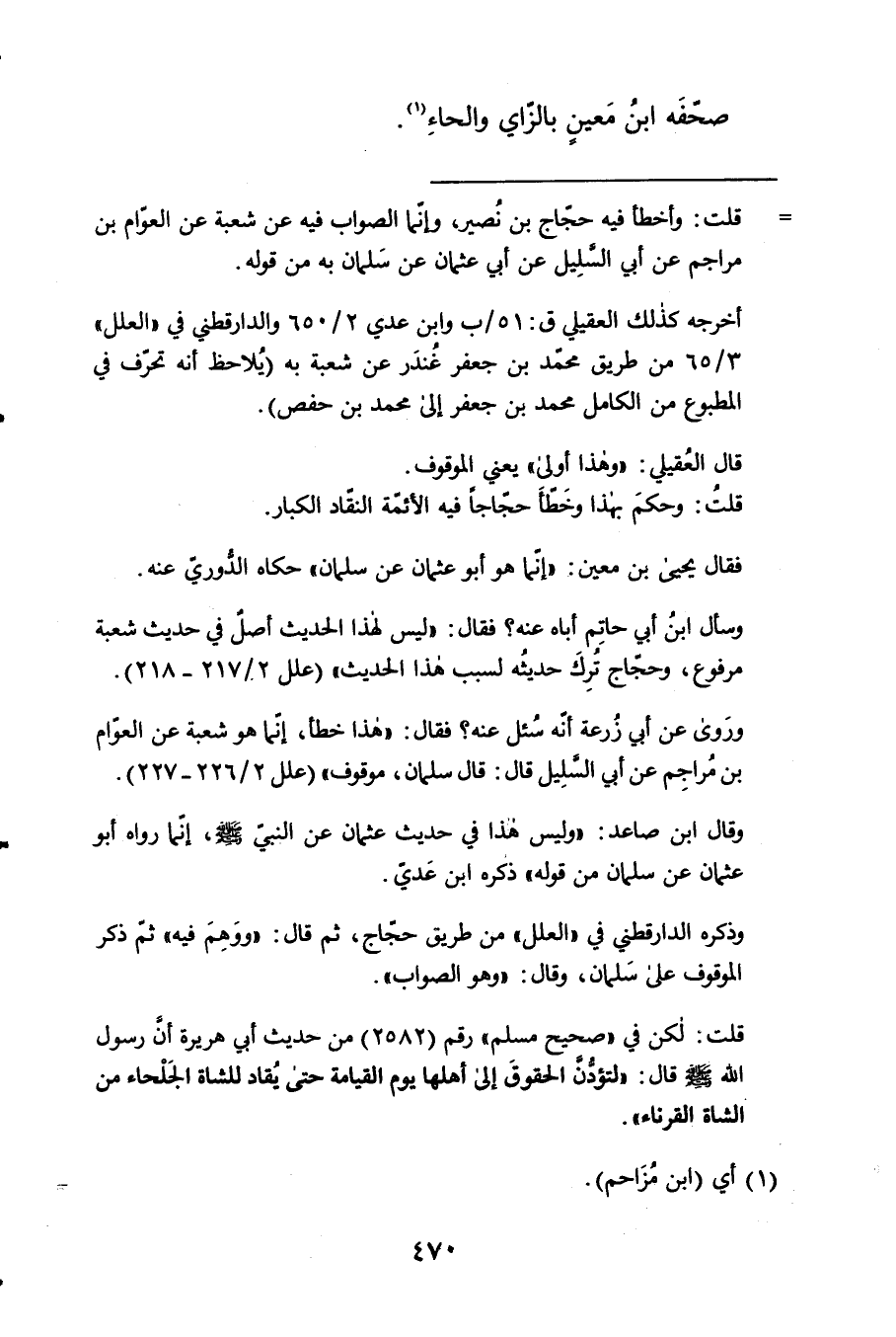 صحفه ابْن معِين بالزاي والحاء
