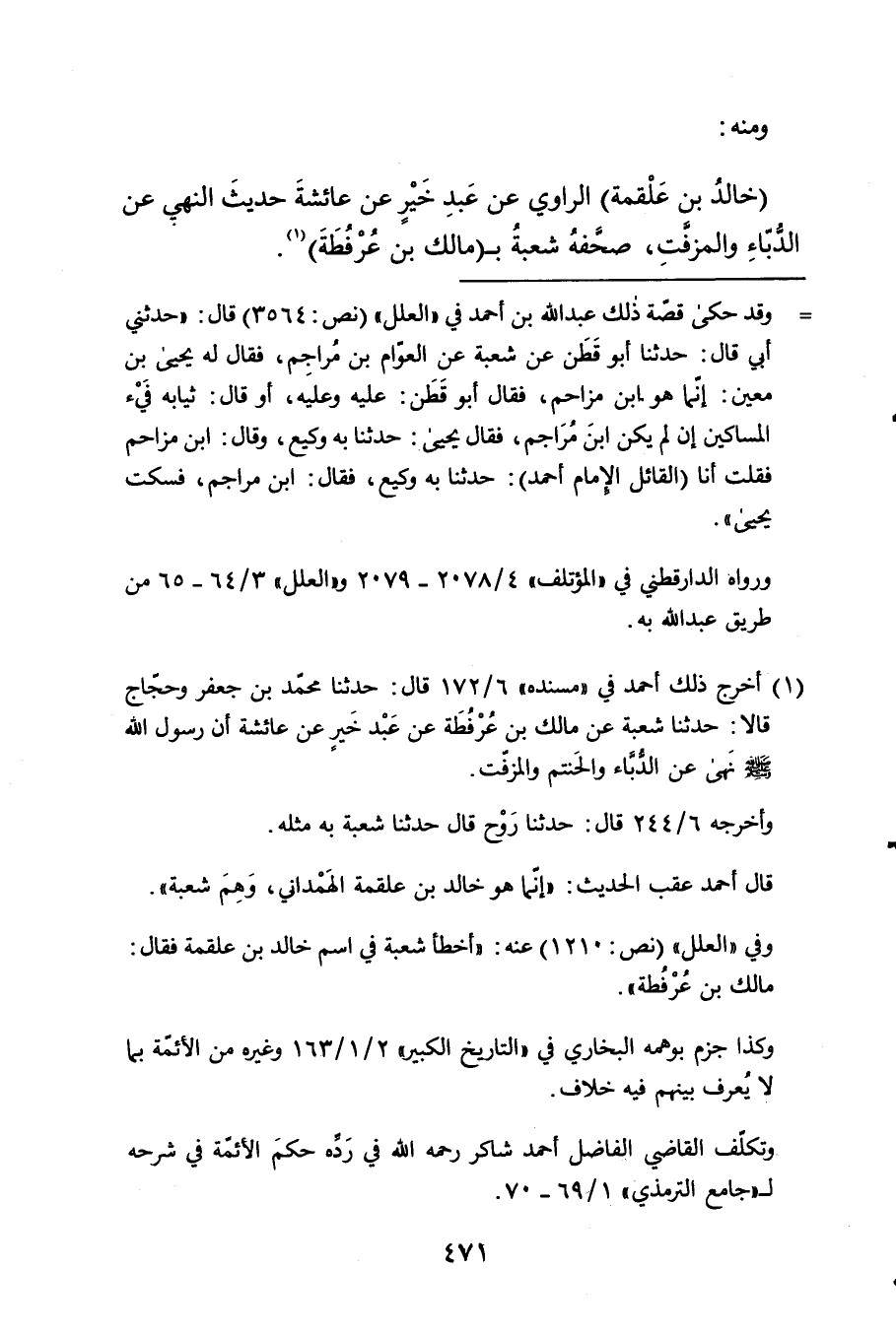 خَالِد بن عَلْقَمَة الرَّاوِي عَن عبد خير عَن عَائِشَة حَدِيث النَّهْي عَن الدُّبَّاء والمزفت صحفه بِمَالك بن عرفطة