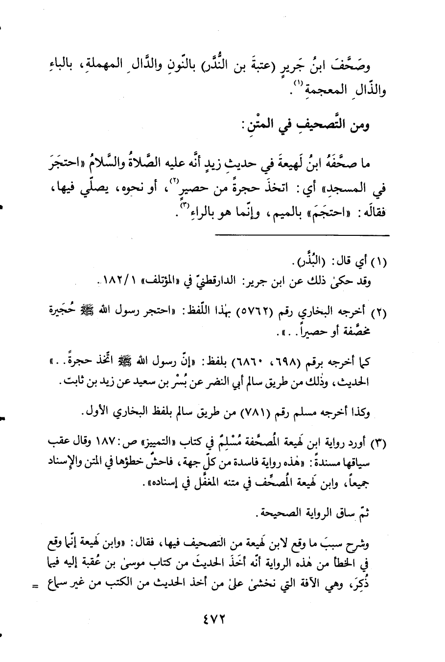 مَا صحفه ابْن لَهِيعَة فِي حَدِيث زيد أَنه عَلَيْهِ الصَّلَاة وَالسَّلَام احتجر فِي الْمَسْجِد أَي اتخذ حجرَة من حَصِير أَو نَحوه يُصَلِّي فِيهَا فقاله احْتجم بِالْمِيم وَإِنَّمَا هُوَ بالراء