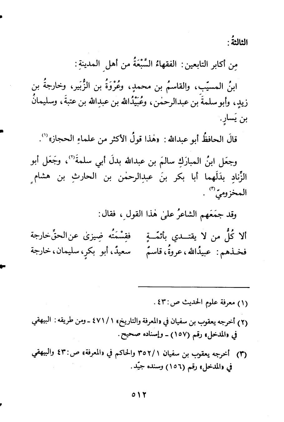 من أكَابِر التَّابِعين الْفُقَهَاء السَّبْعَة من أهل الْمَدِينَة