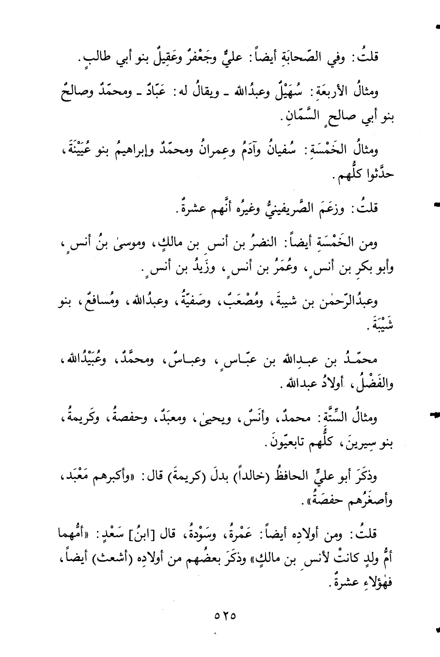 وَمِثَال السِّتَّة مُحَمَّد وَأنس وحيى ومعبد وَحَفْصَة وكريمة بَنو سِيرِين كلهم تابعيون