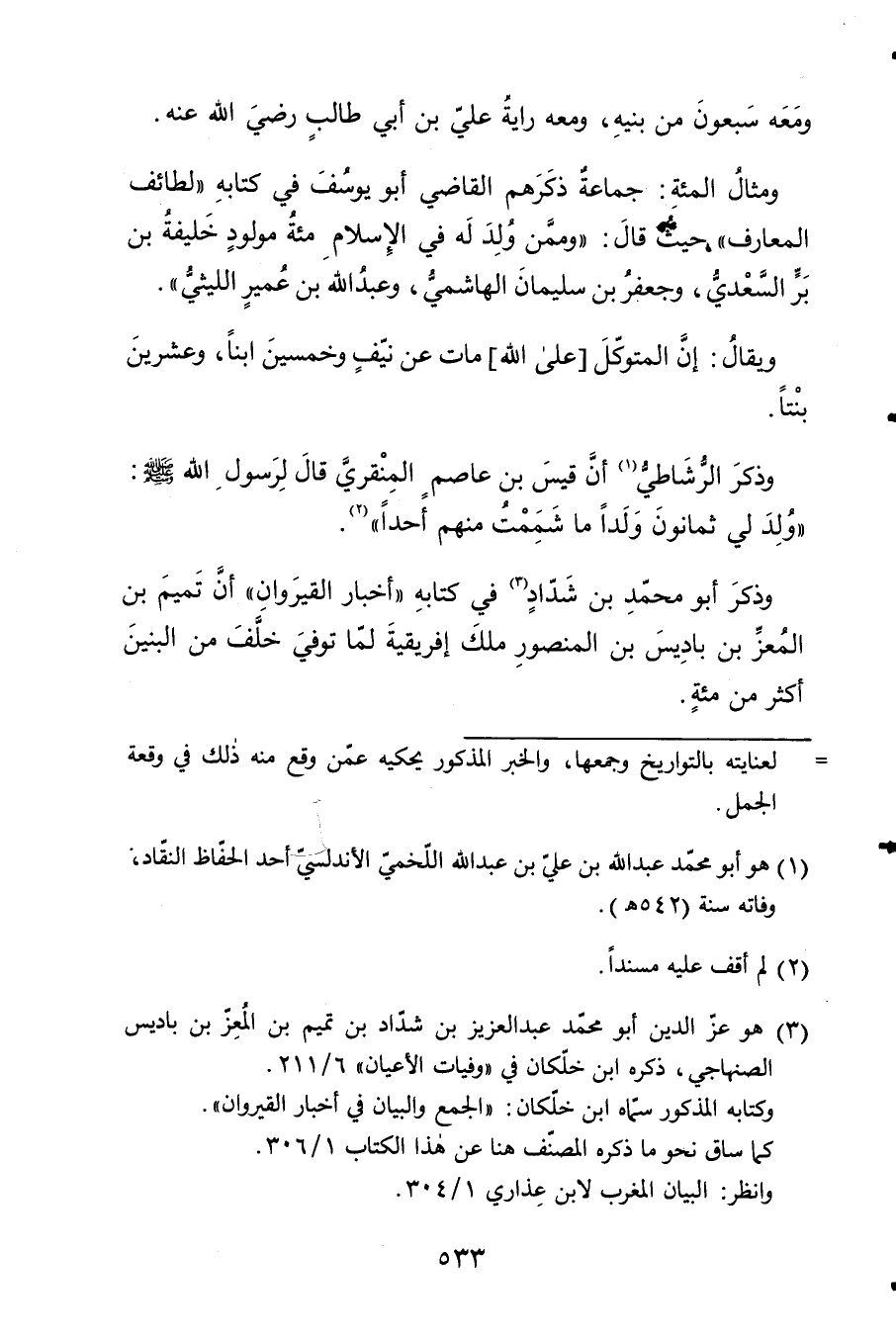 وَذكر أَبُو مُحَمَّد بن شَدَّاد فِي كِتَابه أخبرا القيروان أَن تَمِيم بن الْمعز بن باديس بن الْمَنْصُور ملك إفريقية لَا توفّي خلف من الْبَنِينَ أَكثر من مئة