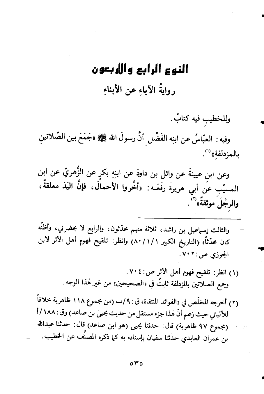 النَّوْع الرَّابِع وَالْأَرْبَعُونَ روياة الْآبَاء عَن الْأَبْنَاء