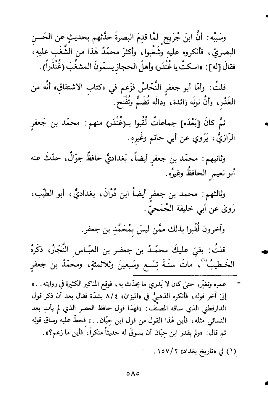 قلت بَقِي عَلَيْك مُحَمَّد بن جَعْفَر بن الْعَبَّاس النجار ذكره الْخَطِيب مَاتَ سنة تسع وَسبعين وثلاثمئة وَمُحَمّد بن جَعْفَر
