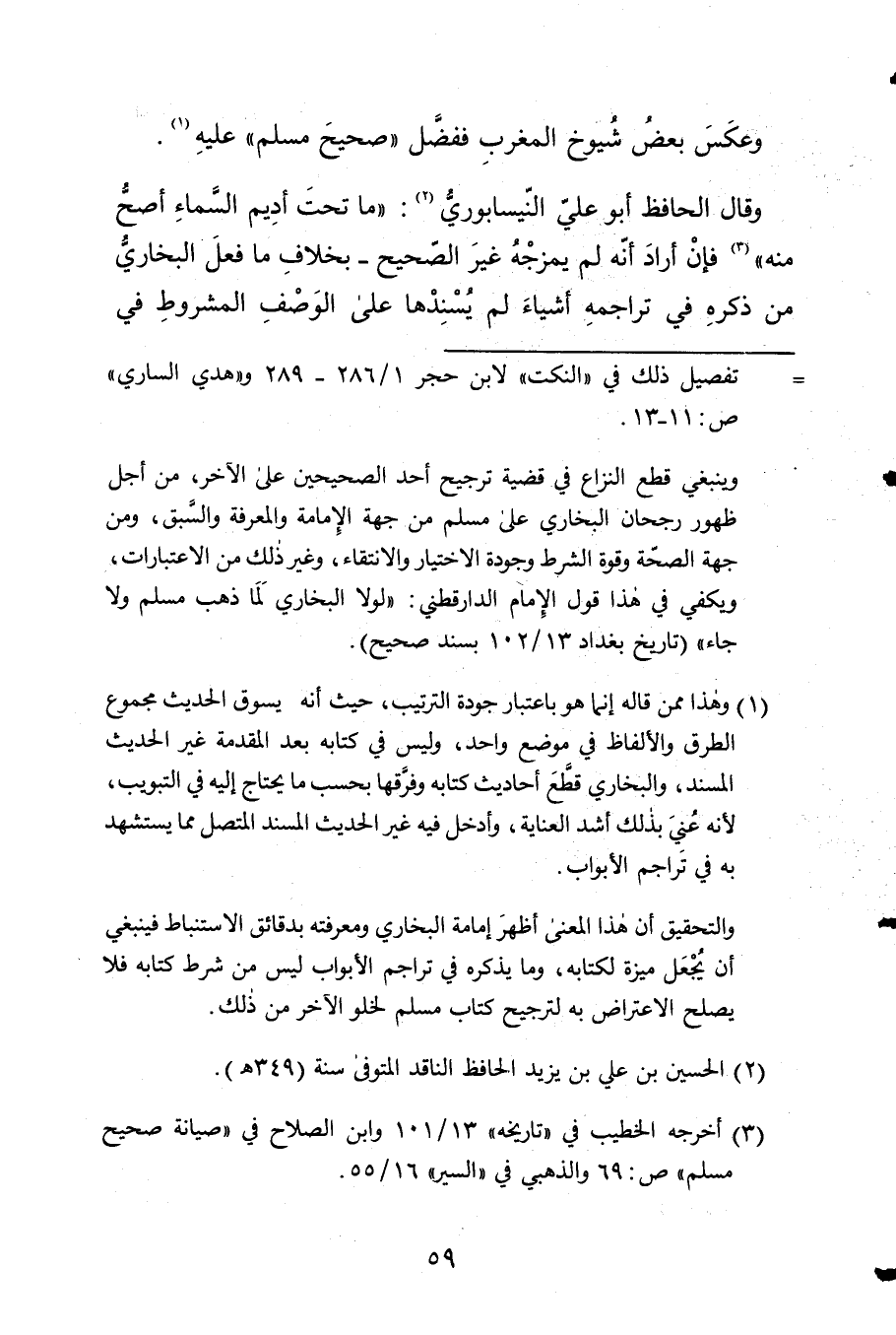 1 - وَعكس بعض شُيُوخ الْمغرب ففضل صَحِيح مُسلم عَلَيْهِ وَقَالَ الْحَافِظ أَبُو عَليّ النَّيْسَابُورِي مَا 2 تَحت أَدِيم السَّمَاء أصح مِنْهُ فَإِن أَرَادَ أَنه لم يمزجه غير الصَّحِيح بِخِلَاف مَا فعل البُخَارِيّ 3 من ذكره فِي تراجمه أَشْيَاء لم يسندها على الْوَصْف الْمَشْرُوط فِي