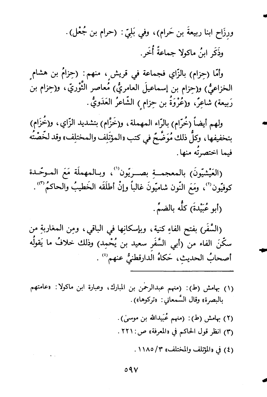 وَلَهُم أَيْضا خرام بالراء الْمُهْملَة وخزام بتَشْديد الزَّاي وخزام بتخفيفها وكل ذَلِك موضح فِي كتب المؤتلف والمختلف وَقد لخصته فِيمَا اختصرته مِنْهَا
