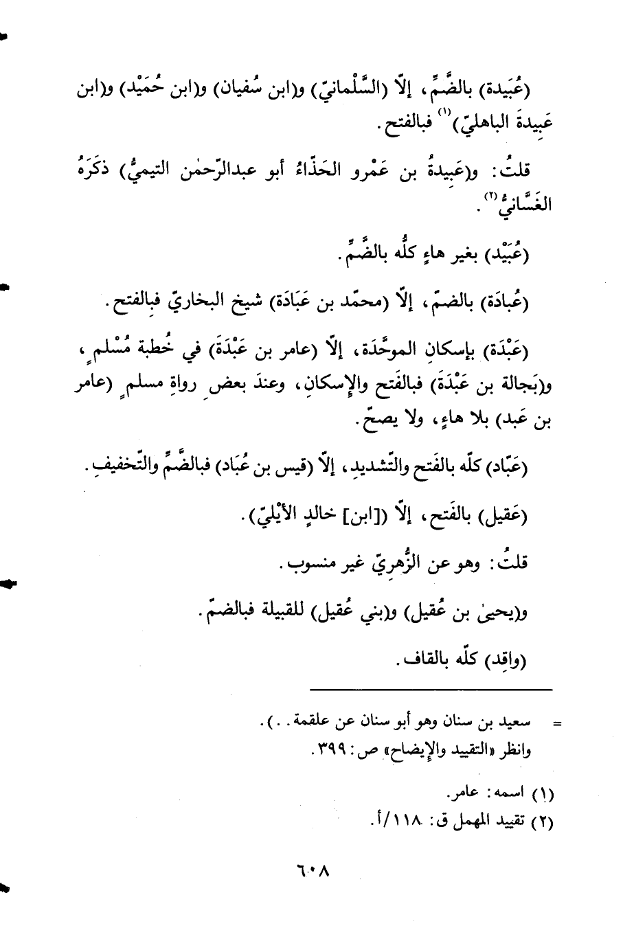 عُبَيْدَة بِالضَّمِّ إِلَّا السَّلمَانِي وَابْن سُفْيَان وَابْن حميد وَابْن عُبَيْدَة الْبَاهِلِيّ فبالفتح