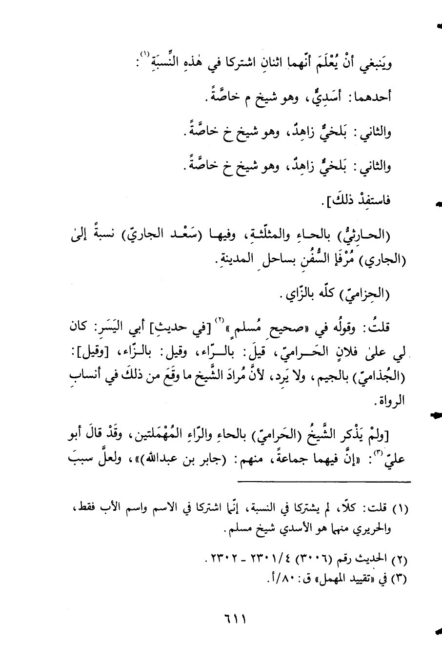 قلت وَقَوله فِي صَحِيح مُسلم فِي حَدِيث أبي الْيُسْر كَانَ لي على فلَان الحرامي قيل بالراء وَقيل بالزاء وَقيل الجذامي بِالْجِيم وَلَا يرد لِأَن مُرَاد الشَّيْخ مَا وَقع من ذَلِك فِي أَنْسَاب الروَاة