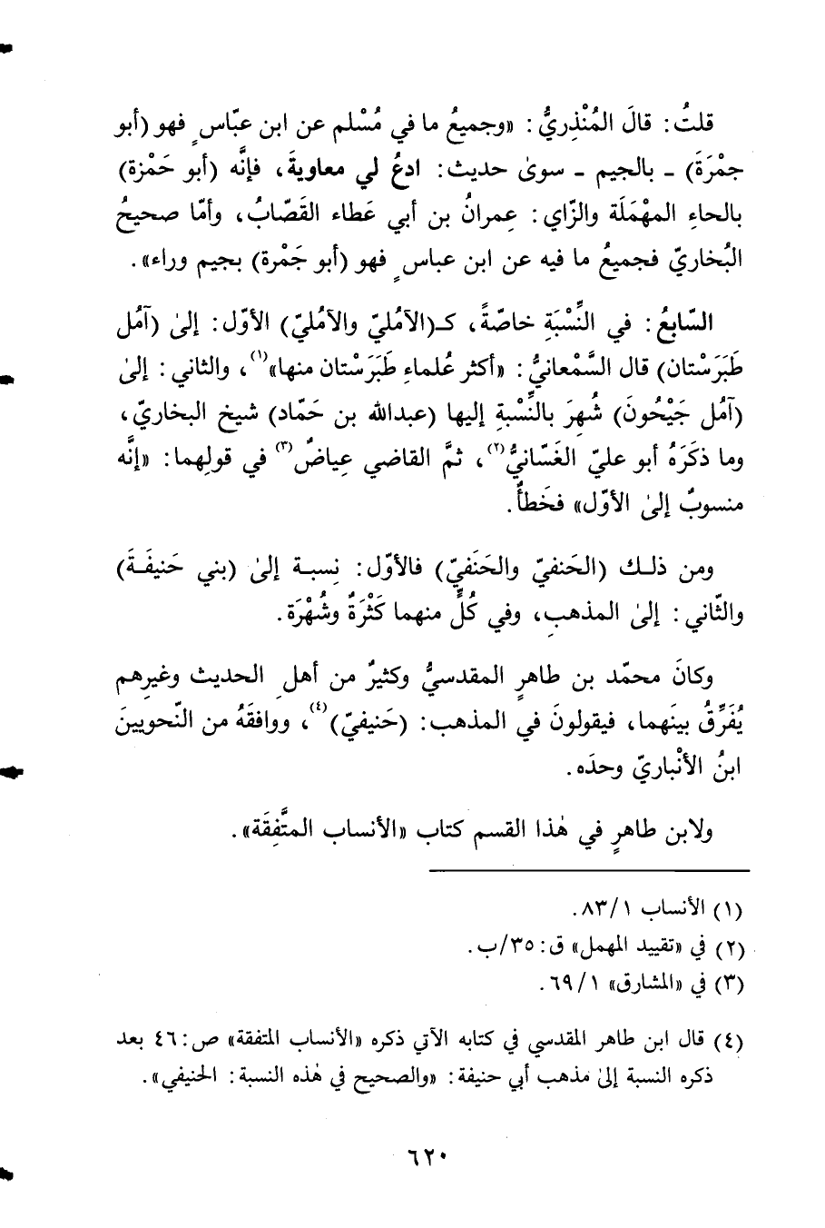 وَكَانَ مُحَمَّد بن طَاهِر الْمَقْدِسِي وَكثير من أهل الحَدِيث وَغَيرهم يفرق بَينهمَا فَيَقُولُونَ فِي الْمَذْهَب حنيفي وَوَافَقَهُ من النَّحْوِيين ابْن الْأَنْبَارِي وَحده