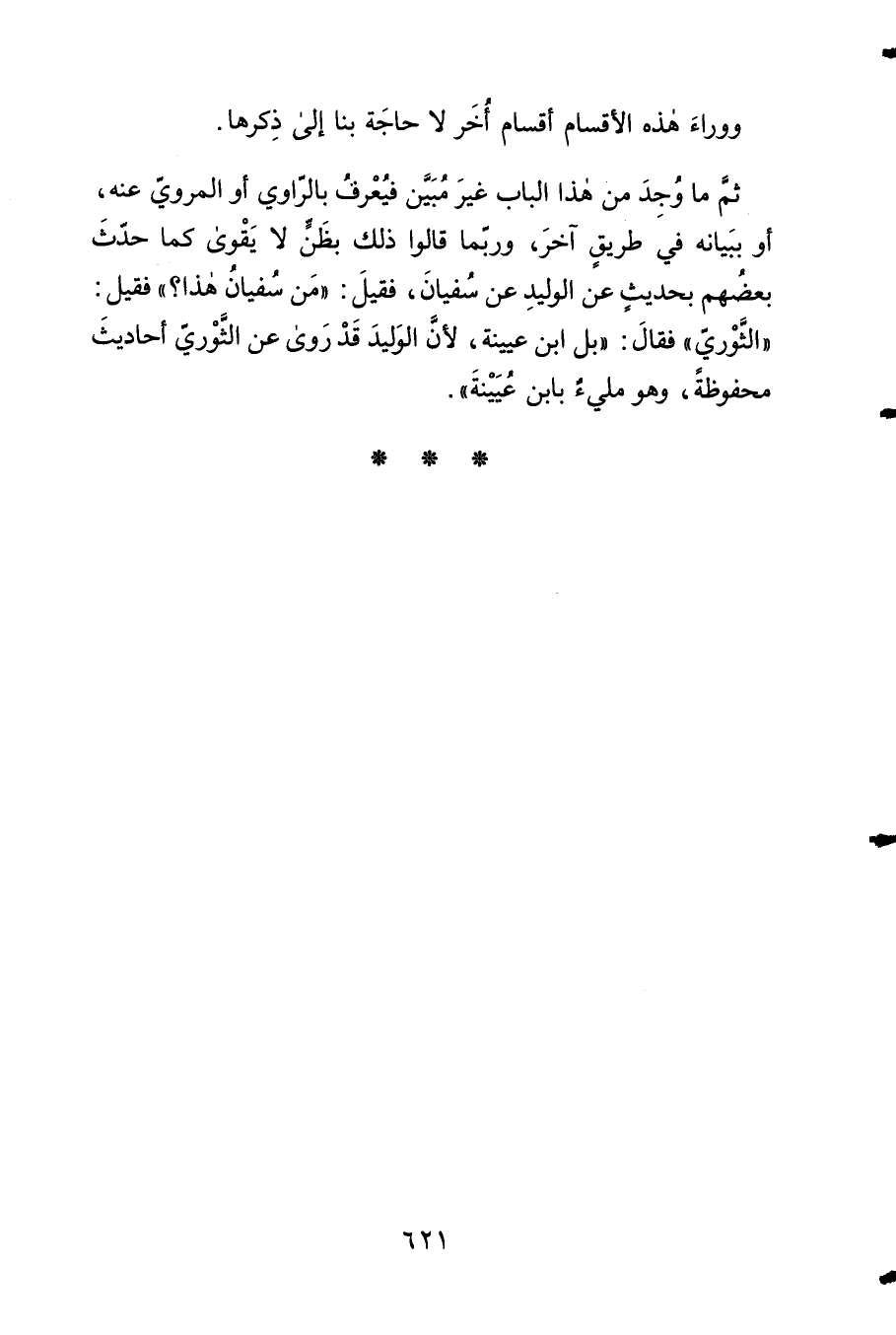 ثمَّ مَا وجد من هَذَا الْبَاب غير مُبين فَيعرف بالراوي أَو الْمَرْوِيّ عَنهُ أَو بَيَانه فِي طَرِيق آخر وَرُبمَا قَالُوا ذَلِك بِظَنّ لَا يقوى كَمَا حدث بَعضهم بِحَدِيث عَن الْوَلِيد عَن سُفْيَان فَقيل من سُفْيَان هَذَا فَقيل الثَّوْريّ فَقَالَ بل ابْن عُيَيْنَة لِأَن الْوَلَد قد روى عَن الثَّوْريّ أَحَادِيث مَحْفُوظَة وَهُوَ مَلِيء بِابْن عُيَيْنَة