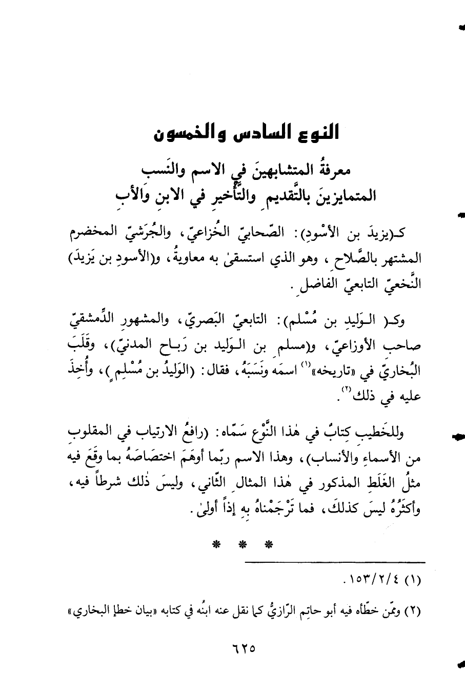 النَّوْع السَّادِس وَالْخَمْسُونَ معرفَة المتشابهين فِي الِاسْم وَالنّسب المتمايزين بالتقديم وَالتَّأْخِير فِي الابْن وَالْأَب