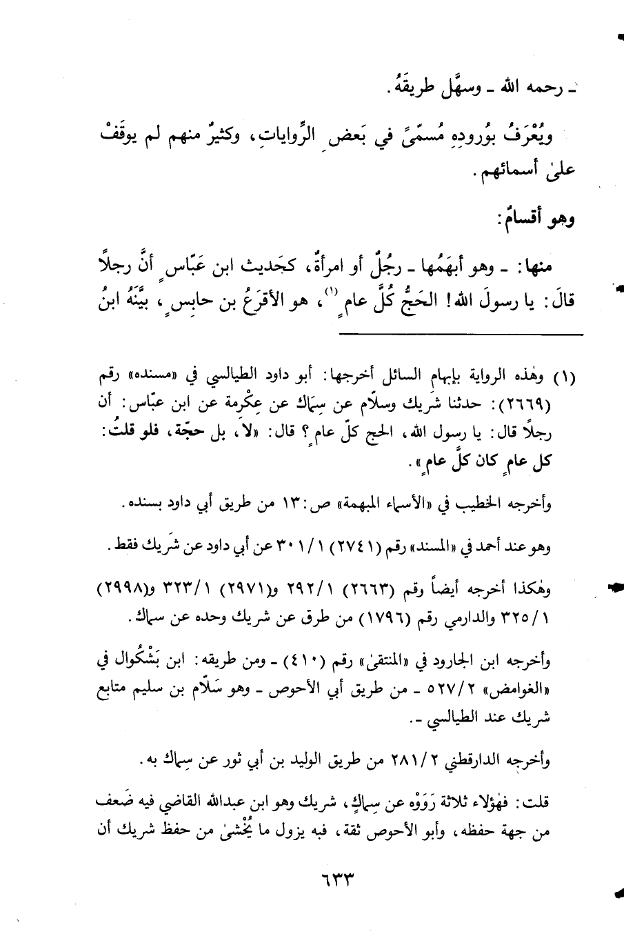 مِنْهَا وَهُوَ أبهمها رجل أَو امْرَأَة كَحَدِيث ابْن عَبَّاس أَن رجلا قَالَ يَا رَسُول الله الْحَج كل عَام هُوَ الْأَقْرَع بن حَابِس بَينه ابْن