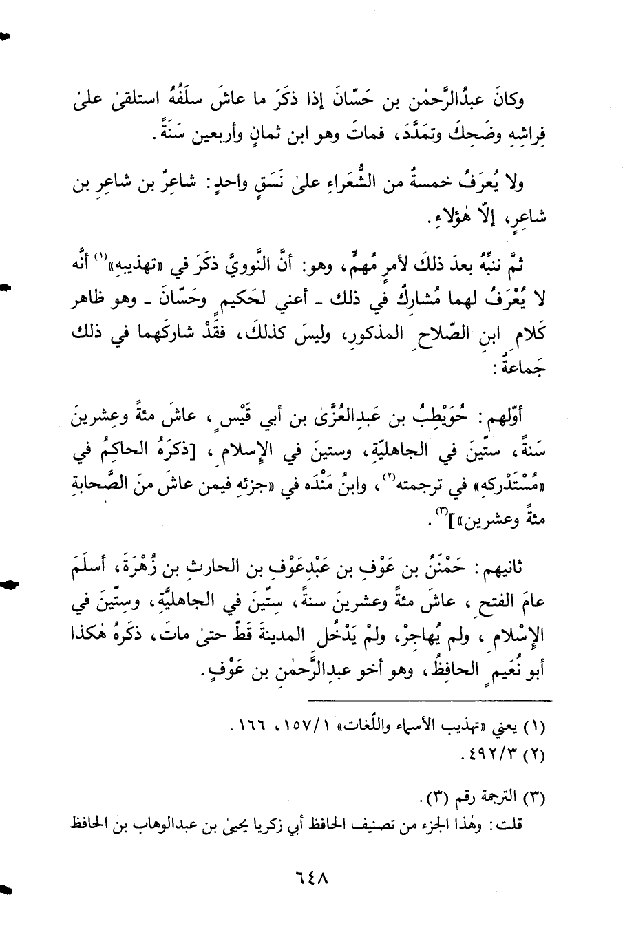 ثمَّ ننبه بعد ذَلِك لأمر مُهِمّ وَهُوَ أَن النَّوَوِيّ ذكر فِي تهذيبه أَنه لَا يعرف لَهما مشارك ف ذَلِك أَعنِي لحكيم وَحسان وَهُوَ ظَاهر كَلَام ابْن الصّلاح الْمَذْكُور وَلَيْسَ كَذَلِك فقد شاركهما فِي ذَلِك جمَاعَة