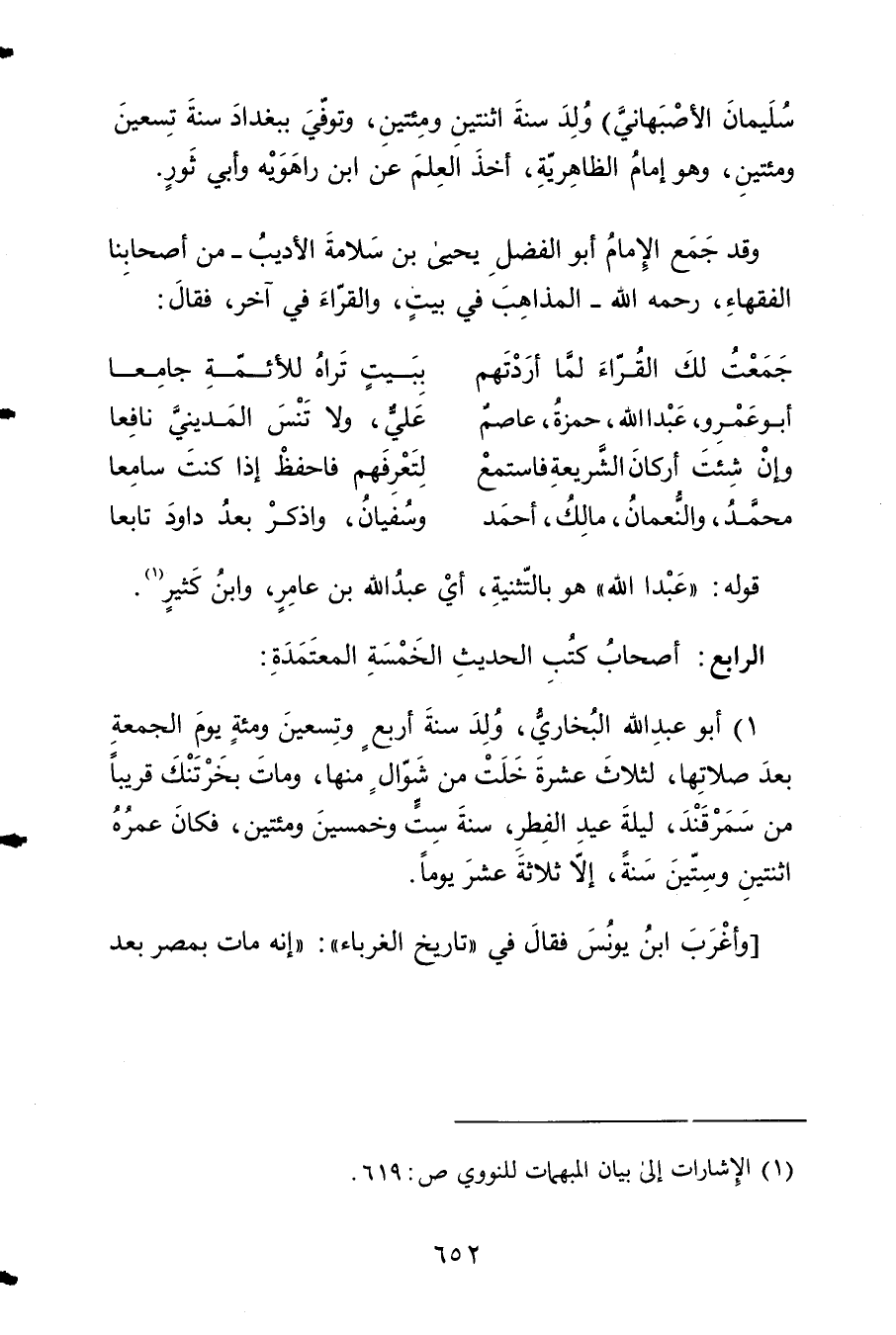 الرَّابِع أَصْحَاب كتب الحَدِيث الْخَمْسَة الْمُعْتَمدَة
