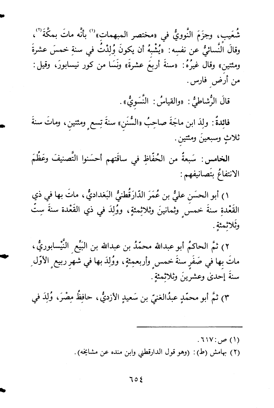 2 - ثمَّ الْحَاكِم أَبُو عبد الله مُحَمَّد بن عبد الله بن البيع النَّيْسَابُورِي مَاتَ بهَا فِي صفر سنة خمس وأربعمئة وَولد بهَا فِي شهر ربيع الأول سنة إِحْدَى وَعشْرين وثلاثمئة
