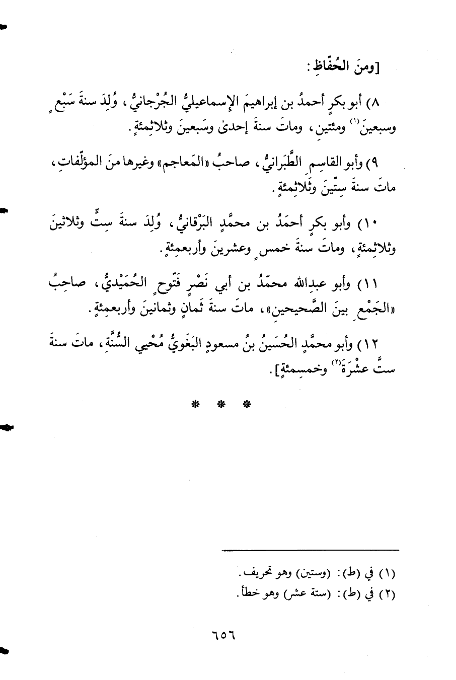 12 - وَأَبُو مُحَمَّد الْحُسَيْن بن مَسْعُود الْبَغَوِيّ محيي السّنة مَاتَ سنة سِتّ عشرَة وخمسمئة
