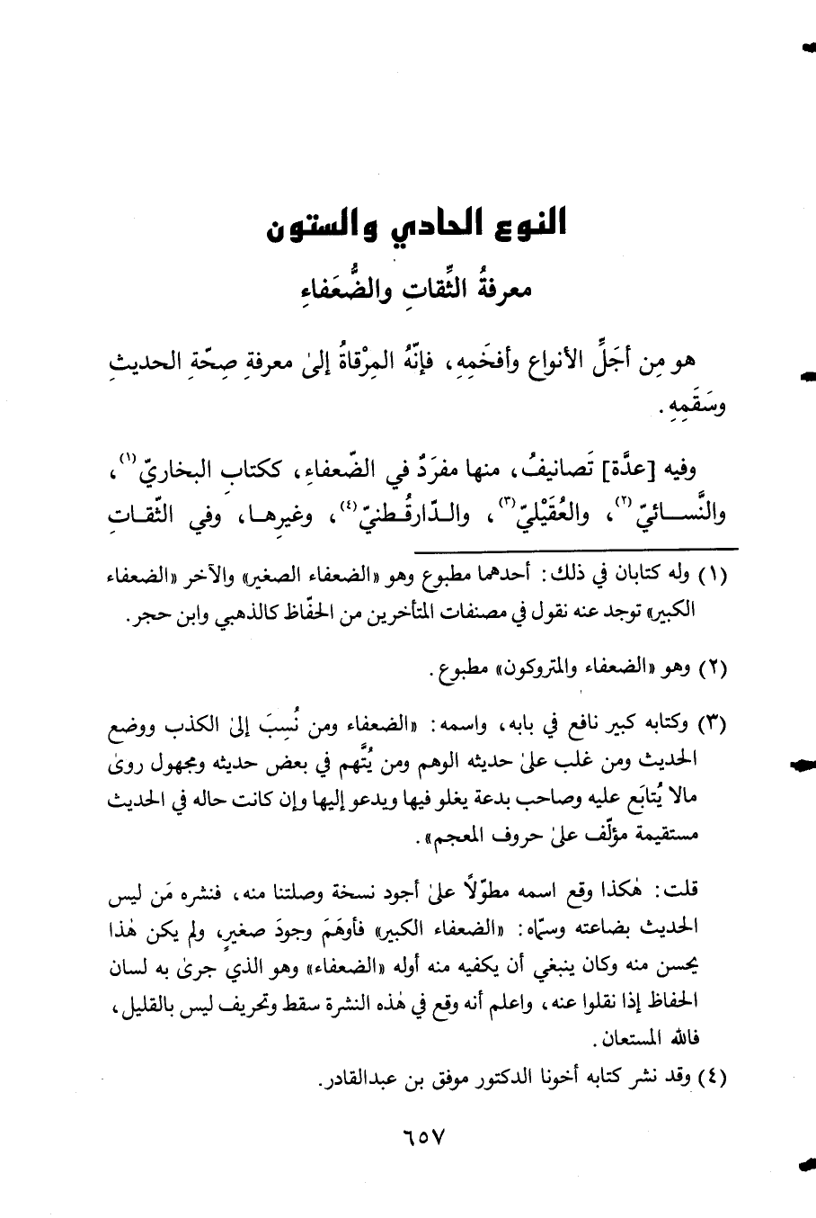 النَّوْع الْحَادِي وَالسِّتُّونَ معرفَة الثِّقَات والضعفاء