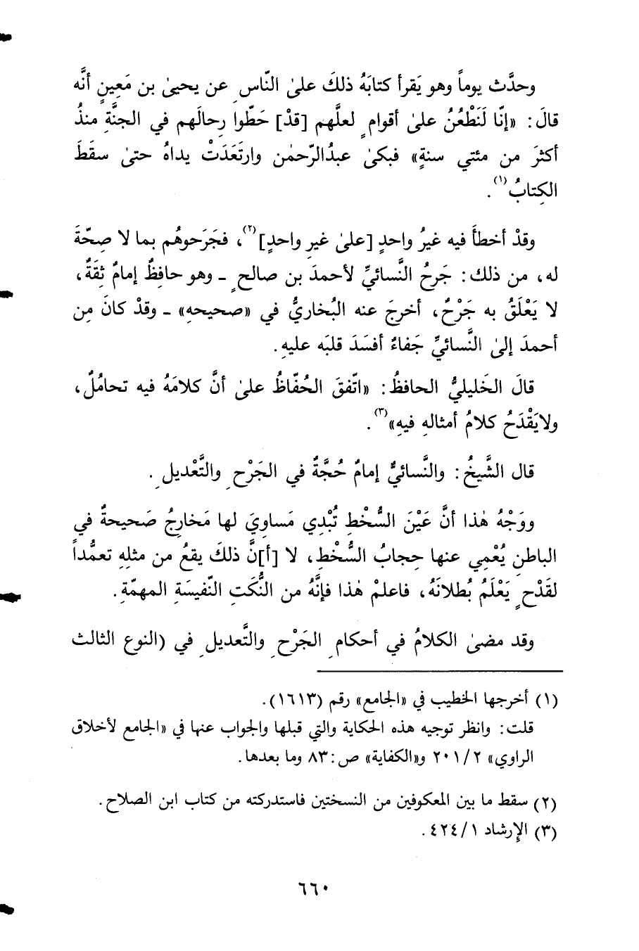 قَالَ الشَّيْخ وَالنَّسَائِيّ إِمَام حجَّة فِي الْجرْح وَالتَّعْدِيل