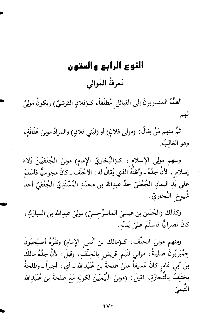 النَّوْع الرَّابِع وَالسِّتُّونَ معرفَة الموَالِي