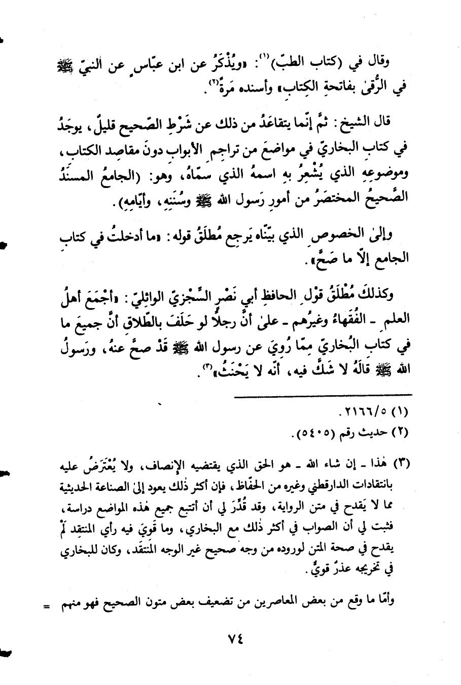 قَالَ الشَّيْخ ثمَّ إِنَّمَا يتقاعد من ذَلِك عَن شَرط الصَّحِيح قَلِيل 3 يُوجد فِي كتاب البُخَارِيّ فِي مَوَاضِع من تراجم الْأَبْوَاب دون مَقَاصِد الْكتاب وموضوعه الَّذِي 4 يشْعر بِهِ اسْمه الَّذِي سَمَّاهُ وَهُوَ الْجَامِع الْمسند الصَّحِيح الْمُخْتَصر من أُمُور رَسُول الله صلى 5 الله عَلَيْهِ وَسلم وسننه وأيامه