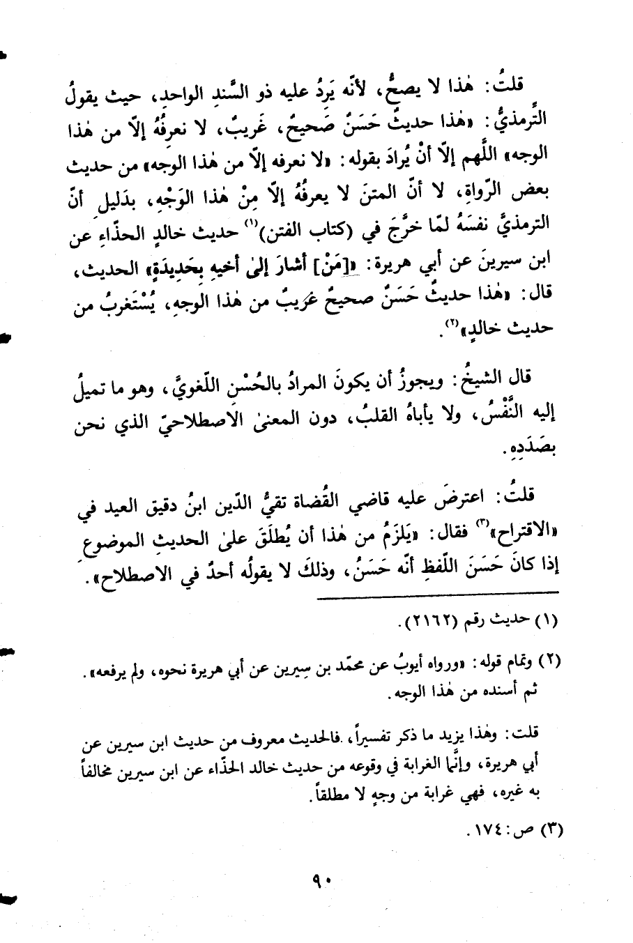 91 - وَلَك أَن تَقول لَا يرد 10 على الشَّيْخ مَا ألزمهُ بِهِ لِأَنَّهُ ذكر هَذَا التَّأْوِيل لِلْحسنِ الَّذِي يُقَال مَعَ الصَّحِيح لَا لِلْحسنِ 11 الْمُطلق والموضوع لَا يُقَال إِنَّه صَحِيح