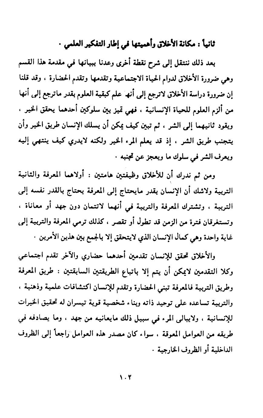 والسبب في اهتمام الإسلام بالأخلاق هذا الاهتمام كله هو أن الأخلاق أمر لا بد منه؛ لدوام الحياة الاجتماعية وتقدمها من الناحية المادية والمعنوية، وذلك حق لا يماري فيه من يتأمل المبادئ الأخلاقية ومدى ضرورتها للحياة الإنسانية، ولنتصور حياة مجتمع ماذا يحدث فيها لو أهملت المبادئ الأخلاقية، وسادت فيها الخيانة والفسق والكذب والغش والسرقة وسفك الدماء والتعدي على الحرمات والحقوق وزالت كل المعاني الإنسانية في علاقات الناس، من المحبة والمودة والنزاهة والتعاون والتراحم والإخلاص، فهل من الممكن أن تدوم الحياة الاجتماعية في هذه الحالة؟!