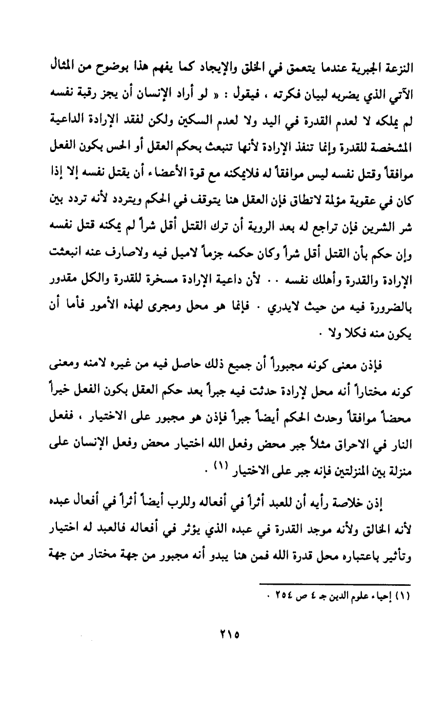 من هذا نفهم وجود جبرية في العالم تتمثل أولاً في مصير الإنسان, فإنه لا بد من أن يموت مثلاً, ولا بد من أن يحيا مرة أخرى, وتتمثل أيضاً في أنه مقيد بإطار معين من أطر جبرية الكون من حيث إنه مقيد بالقوانين الطبيعية عموماً وبقوانين الطبيعة البشرية خصوصاً.